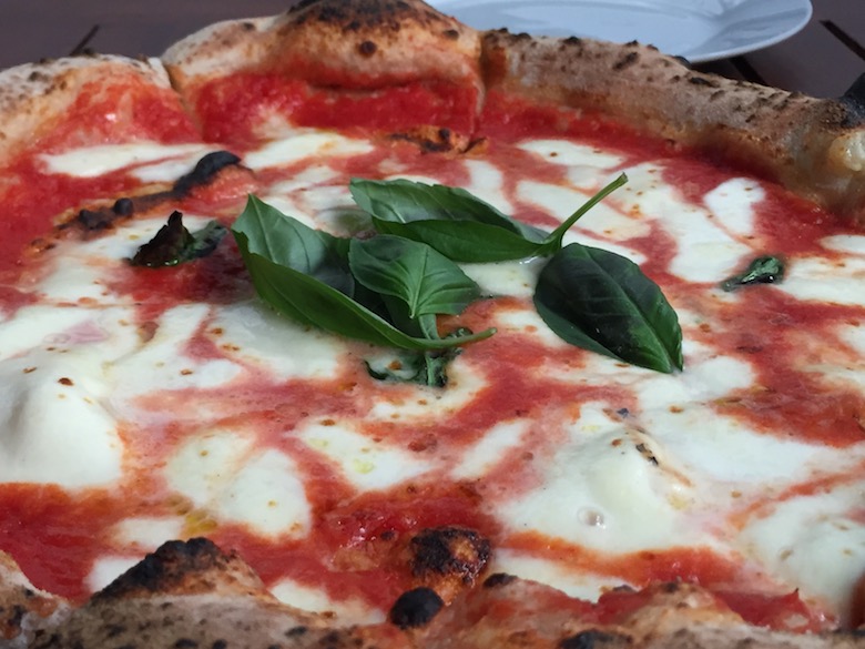 Womit wir bei Einsatz und Anwendung der besagten Zutaten wären. Als Einstieg bringt Luigi die Pizza Magherita, für mich bereits die Königsklasse unter den den Pizzen. Weniger ist für mich bei der Pizza eben mehr, zeugt diese Reduktion doch von der großen Kunst der Einfachheit. Bei dieser Variante ist der Pizzaiolo mit Vesuvblick ganz in seinem Element. Von der Belegung bis zur Lage auf dem Teller vergehen gerade einmal 60 - 90 Sekunden bei 450 Grad! Ein höllisch heißes Kurzvergnügen mit himmlischen Folgen, der Königin noch immer die Ehre erweisend.