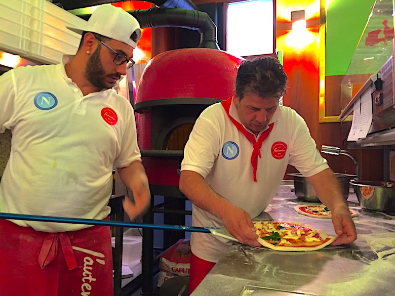 Doch zurück in die Zukunft, die sollte diese Pizzeria allemal haben. Womit wir bei der zweiten Zutat wären, dem Pizzaiolo aus Pozzuoli. Luigi Tesoro (wird hier der Name zum Programm! - im Bild unten rechts) wuchs wie die große Sophia Loren in diesem Kleinod bei Neapel auf. Seit seinem 14. Lebensjahr bestimmt der Hefeteig (da war die Loren längst nicht mehr vor Ort, daher Zeit für den Beginn einer profunden Ausbildung) sein Lebenswerk, das er mit großer Liebe und Sorgfalt seit über 20 Jahren in Österreich ausübt.