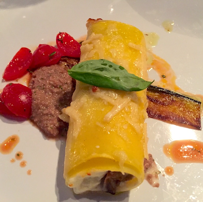 Der von den Damen beider Konsortien streng überwachte Koch schließt mit seiner Canneloni-Variante, die noch einmal die beiden reifen Brüder ins rechte Licht, bzw. die gerollte Pasta mit passenden Gefährten nach einem Backofenstopp auf unsere Teller bringt. Fazit an den Küchenchef: Ideenreichtum lohnt sich, Geschmäcker gehören zum Querdenken gebracht und der Wein dazu sollte aus der Herkunftsgegend sein, zwecks allumfassend italophiler Gaumenbenetzung.