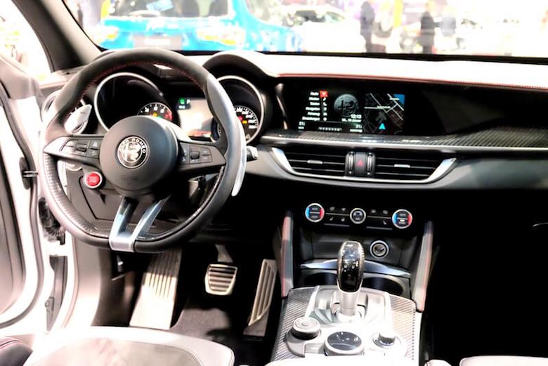 Man sitzt herrschaftlich im Stelvio, wohlig eingebettet in die Leder-Alcantara Sportsitze, die sowohl Komfort, als auch Race Spirit vermitteln. Für die Sportler unter den ambitionierten bieten sich aber die Schalensitze von Sparco an, ebenfalls in schwarzer Leder-Alcantara Kombination.