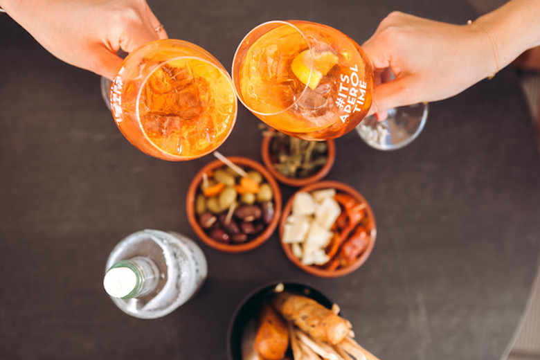 Wie es in Italien üblich ist, werden beim Aperitivo-Ritual ab 17:00 Uhr zu den erfrischenden Drinks kostenlos Aperitivo Snacks wie Oliven und Cracker gereicht.
