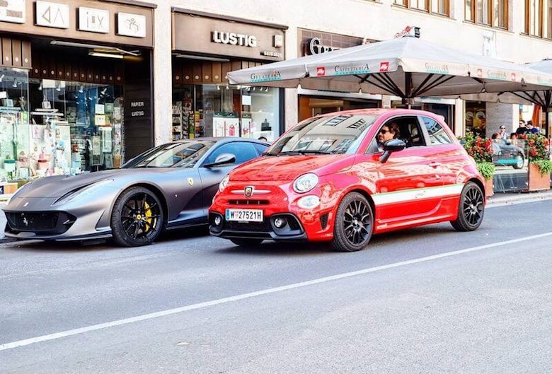 Das Schuljahr neigt sich dem Ende zu, die langen Wochenenden häufen sich und die Anforderungen an die Unterhaltung der Bambini steigt. Ferienstimmung macht sich langsam breit, egal ob in Lignano, Grado oder Wien, wo die Dichte an Eissalons den Mangel an Mare und Sole locker wegmacht. Und um unseren Giro del Gelato perfekt zu machen, braucht es ganz viel Amore, die ich mir mit einer knallroten Kugel gönne, einem Abarth 595 Pista.