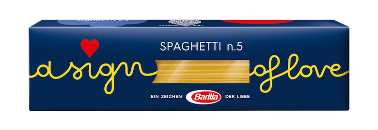 Mit „A Sign of Love“ [„Ein Zeichen der Liebe“] und den zwei von der italienischen Künstlerin Olimpia Zagnoli gestalteten Spezialeditionen der Pasta-Klassiker Spaghetti N.5 und Spaghettini N.3, möchte Barilla wortwörtlich ein Zeichen der Liebe setzen.