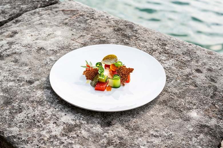 Christine von der Pahlen machte sich auf den Weg zum Gardasee, umrundete ihn suchend nach, in vielerlei Hinsicht, besonderen Plätzen. Gefunden hat sie Zutaten für einen prächtiger Reise-Koch-Bilderband im Coffee Table Book-Format – das beginnt schon beim Cover, dessen Haptik ein Bildschirm einfach nicht bieten kann.