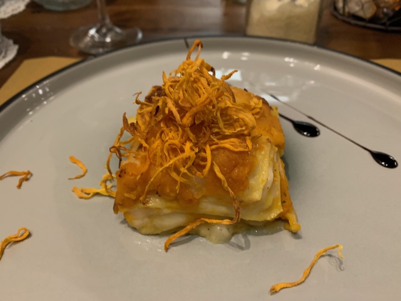 So treffe ich die Weinmacher der Cantina Monte Fasolo wieder, wo ich erst gestern zu Besuch war. Am Tisch daneben die weinmachende Belegschaft von Ca`Lustra, wo ich nach dem Mittagessen vorbeischauen werde. Mit beiden im Gespräch der Bruder der Besitzerin, der sich um 70 Ziegen kümmert, die die Materia prima für seine Käsevariationen produzieren. Seine Art Käse zu machen trägt eine unverkennbar piemontesische Handschrift. Überhaupt: die regionale Zusammenarbeit wird groß geschrieben, was sich bei den Zutaten in der Küche zeigt. Die Pasta fresca zum Beispiel wird mit Mehl von einem Landwirt aus dem nahen Baone gemacht, seine Spezialität sind alte Weizensorten.