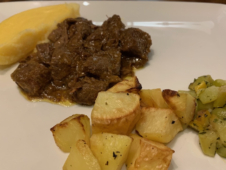 Gegen 13 Uhr kann man von einem Full House sprechen. Drei Generationen einer Familie nehmen am Nebentisch Platz, Handelsvertreter einen Tisch weiter verköstigen sich mit dem Tagesgericht. Wie in ländlichen Trattorien üblich, findet der Austausch über die Tische hinweg statt. Unterbrochen durch eine strenge Zwischenote der Nonna am Drei-Generationen-Tisch, die das aus Hunger übermütige Enkerl zu Ruhe & Geduld mahnt. Volles Leben in 360gradiger Hochform. Wohlgemerkt, wir haben einen Donnerstag in den Colli Euganei süd-westlich von Padua. Gekennzeichnet zudem durch den schnellen Tischwechsel in einer dem Slow-Gedanken verschriebenen Gaststätte.