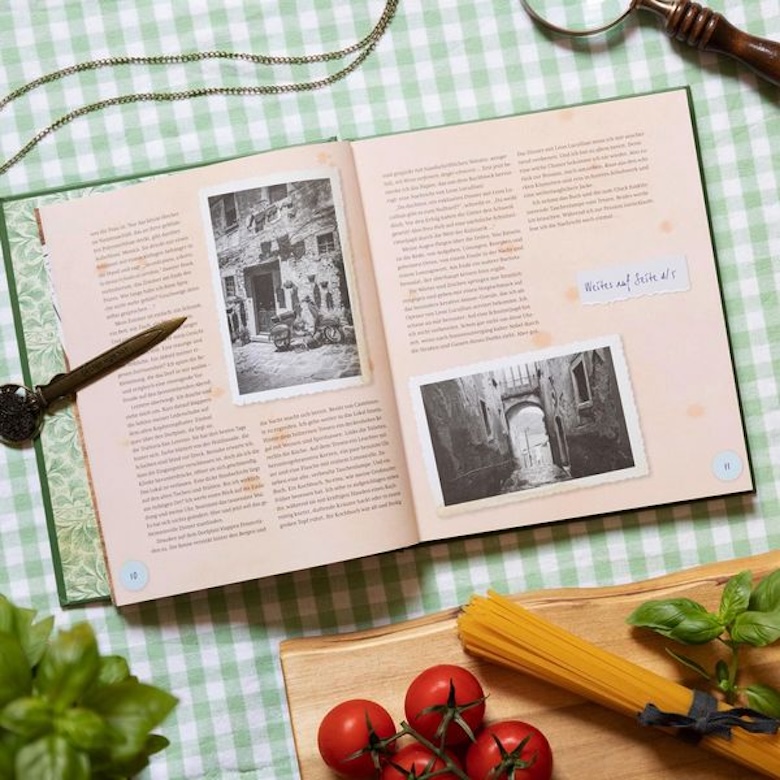 Damit beginnt eine Schnitzeljagd à la italiana, die sie quer durch den Ort und ihre Vergangenheit führen wird. Um den Weg zum Dinner zu finden, wird der Leser zum rätselknackenden Pfadfinder, belohnt mit Rezepten, die eine kleine kulinarische Reise von Mailand bis Sizilien erlauben.