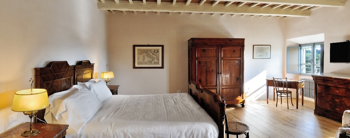 "Bewohnt" werden 4 Suiten, 15 Superior Zimmer - die jeweils einem Thema gewidmet sind - und 6 ganz neue Zimmer in der Dependance (2024!). Gemeinsam ist den Zimmertypen der Blick in die Hügellandschaft, die man im Italienischen mit dolce colline treffend zu beschreiben weiß.
