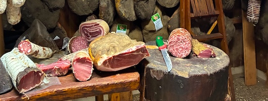- Halbtägiger Ausflug mit Genussguide (in englischer Sprache) mit Besuch eines skurillen Feinkostladens (Verkostung Salumi / Formaggi) + am Rückweg beim Winzer, ebenso mit Verkostung