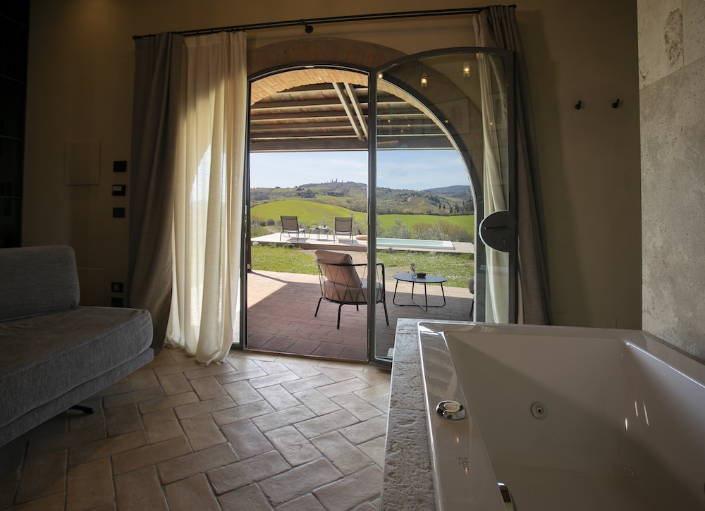 Betrachten wir die Lage kurz geographisch: 7 km sind es bis San Gimignano, 20 km nach Colle di Val d`Elsa, 35 nach Volterra, 45 km nach Siena und nach Florenz sind es ca. 50 km. Einzig zum Meer ist es recht weit und sehr kurvig (1,5h), doch taucht man hier ohnehin gerne in ein Meer aus Genuss ein.