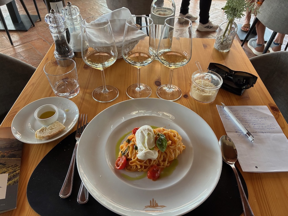 Und dem gewissen Blick - nämlich jenen auf San Gimignano. Hat mich schon beeindruckt und die geführte Verkostung im Garten des hauseigenen Restaurants zu einem kulinarischen Erlebnis gemacht. Der Fokus liegt in dieser Gegend auf dem Vernacciaa di San Gimignano, doch werden auch Chianti Colli Senesi als roter Kontrast zu den wunderbaren Weißweinen produziert.