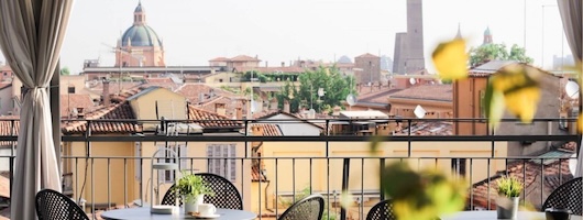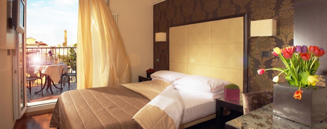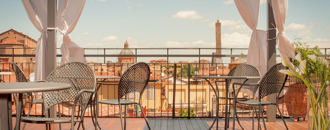 Als Basis unseres Bologna-Angebotes habe ich ein zentral gelegenes Hotel (5 Gehminuten von der Piazza Maggiore entfernt) ausgewählt, womit man ab dem Einchecken alles bequem zu Fuß erreichen kann. Auf 4 Stockwerke verteilen sich die erst vor kurzem (2021 - 2024) renovierten Zimmer - im 4. Stock teilweise mit Balkon buchbar. Darüber das kleine Juwel des Hotels, die Dachterrasse, die von März bis Oktober zum Apertivo oder einem entspannten Cappuccino einlädt.