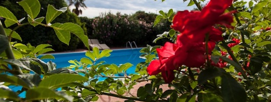 Zu sehen bekam ich vier appartmentähnliche Zimmer im Stammgebäude, die mit liebevollen Details und viel Platz aufzuwarten wußten. Versteckt hinter dem Gebäude ein romantischer Garten mit Pool und kleinem Arkadengang, der schon nach einem Glas zu gastrosophischen Betrachtungen führen sollte - abgerundet durch ein Kaminzimmer mit großem Wohn- und Küchenbereich, wo das Frühstück eingenommen oder der Lektüre gefrönt werden darf.