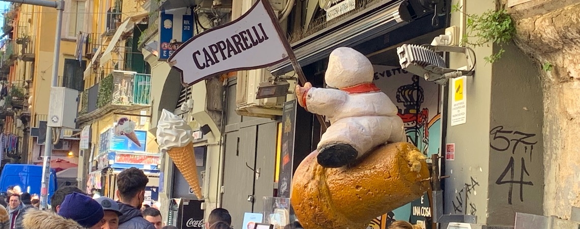 Was in Neapel Leib & Seele zusammenhält, lassen wir uns heute von Dario Santangelo auf einer Tour durch die Altstadt erzählen. Da werden sich historischen Fakten mit persönlichen Anekdoten vermischen und die Suche nach Muschelformen auf Gebäuden intensiviert. Es geht dabei um nichts weniger als den Ursprung der Tradtion der Muschel am Jakobsweg! Keine Angst, der Weg wird nicht ganz so lange, dafür aber zur Herstellung jener Sfogliatella (einer süßen, nicht zu widerstehenden Versuchung in besagter Muschelorm) führen. Womit wir auch schon inmitten der Gassen der Krippenmacher gelandet sind (mehr dazu am Donnerstag).
