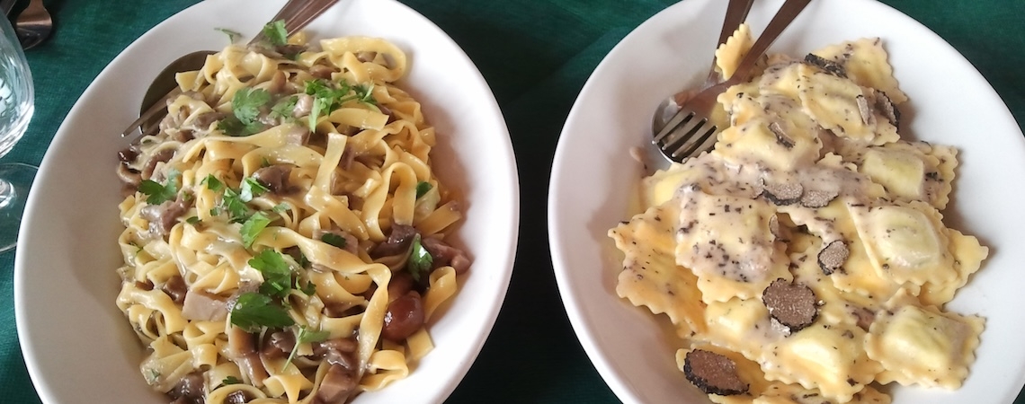 Bagno di Romagna ist in Italien als Thermalort bekannt. Bei uns eigentlich gar nicht, wenn man ehrlich ist. Neumodisch könnte man sagen, in Bagno kann man Wellness machen. Wenn man sich dabei nicht nass machen will, dann geht das ganze aber erst richtig los. Die Gegend um Bagno ist im Herbst ein kulinarisches Paradies, wachsen doch jede Menge Funghi porcini und lassen sich Trüffel vom Hunde erschnüffeln.