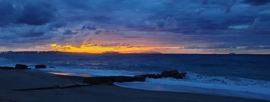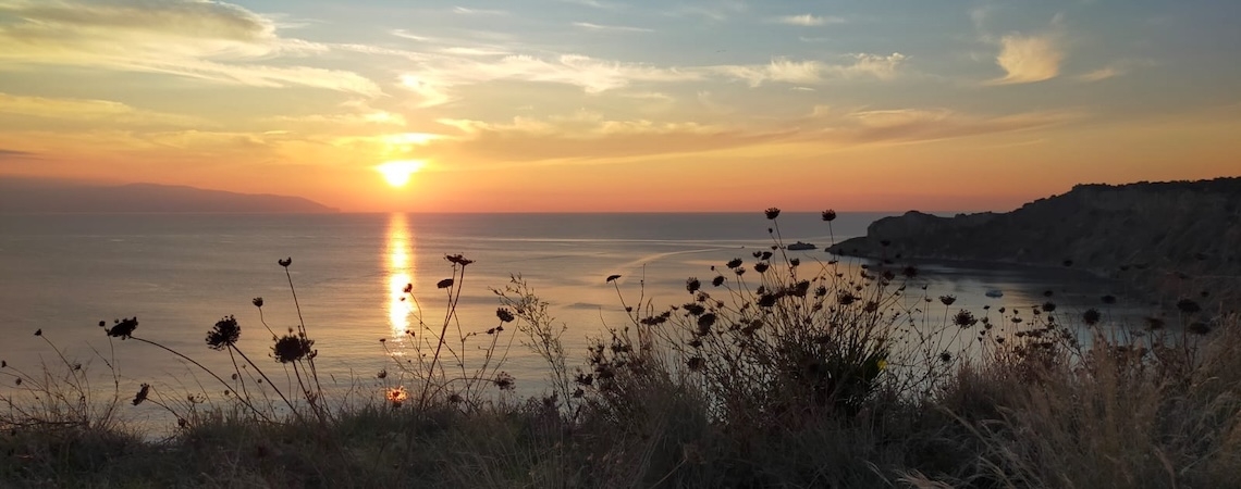 Ein Teil der Äolischen Inseln im Hintergrund bühnenreif platziert, die Sehnsucht im Herzen und die gelb-rote Kugel am Weg ins abendliche Meerbad - mehr geht leider nicht!